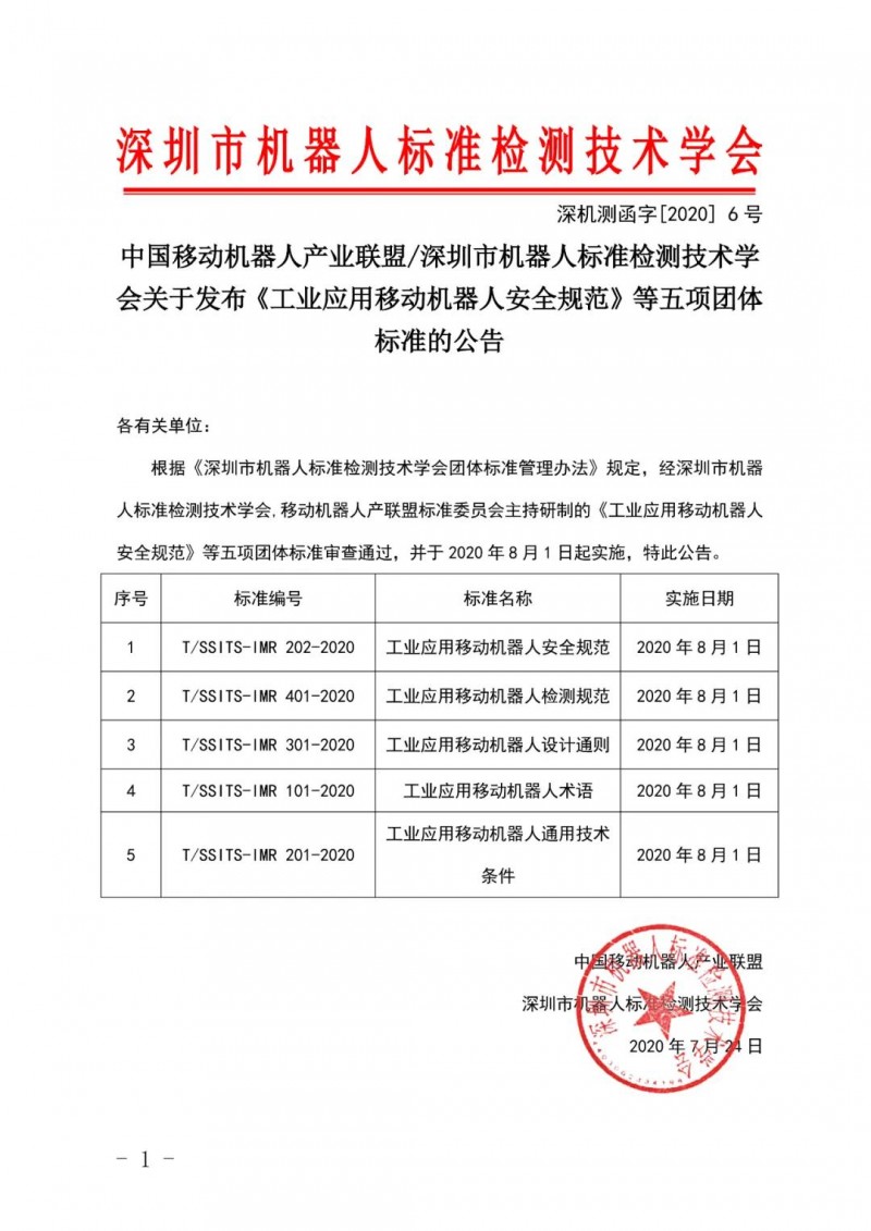 聯盟關于發布工業應用移動機器人五項團體標準的公告