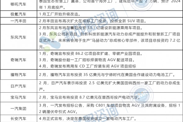 2023上半年汽車行業(yè)投資擴(kuò)產(chǎn)及AGV項目招標(biāo)情況分析