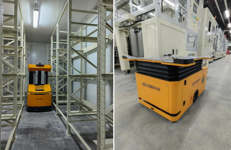 圖:??禉C器人AMR動力電池制芯工藝段應用