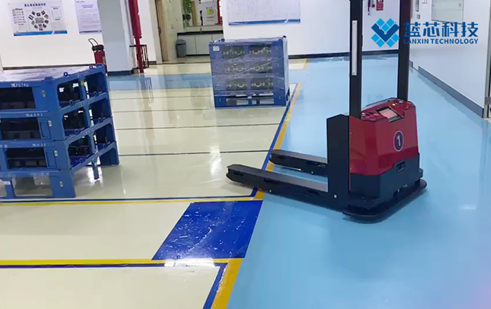 圖:藍芯科技無人叉車某鋰電企業車間應用