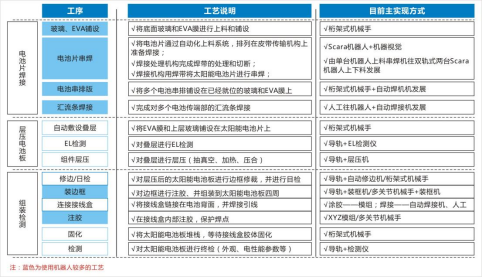 關節機器人主要運用在了電池片焊接、排版、裝邊框、注膠等環節,而移動機器人主要用于不同工序之間的工序對接。