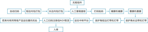 玻璃原片上料—EVA裁切鋪設—自動上模板—自動串焊—自動擺串—上背玻—EL測試單元—緩存堆棧—混進定位單元—層壓機—混出定位單元—自動修邊—翻轉檢查單元—自動裝框—上料機—固化—清洗--下料機—絕緣耐壓測試—IV測試單元—自動分檔—自動包裝—自動出入庫等。組件生產AGV自動小車自動按需運輸流程大致流程如下: