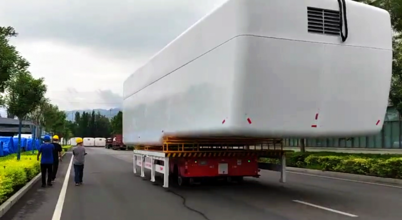 在搬運環(huán)節(jié)中,航天智造為浙江運達風電,研制的200噸全向舵輪AGV,載重量大,轉向靈活且可以全向移動不傷地面,定位精度高,操控方便,滿足客戶大型風電的運載要求。