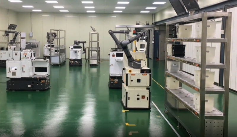 但FAB工廠的晶圓制造AMHS要進(jìn)一步提升產(chǎn)能和效率,僅依靠OHT工作效率的提升是不現(xiàn)實(shí)的。OHT受制于軌道鋪設(shè)、單維運(yùn)動等因素,在未覆蓋區(qū)域的人工干預(yù)是必要的。而要實(shí)現(xiàn)全廠OHT覆蓋,AMHS系統(tǒng)的成本會非常高,而柔性極強(qiáng)的移動機(jī)器人可以打通這些節(jié)點(diǎn),連通FAB工廠凈室和非凈室的物料交互,實(shí)現(xiàn)了整個FAB工廠的智能制造。