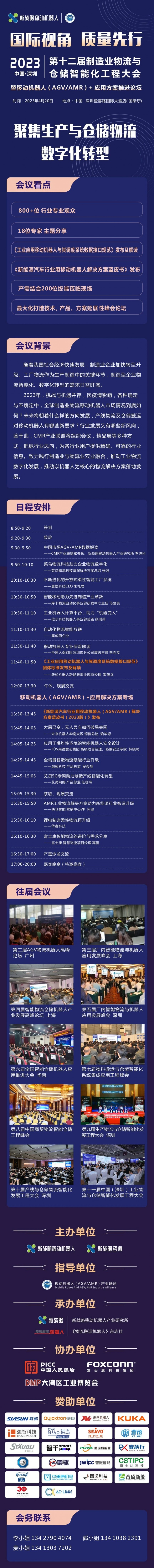 核心提示:2023第十二屆制造業物流與倉儲智能化工程大會暨移動機器人(AGV/AMR)+應用方案推進論壇“將在深圳重磅舉行