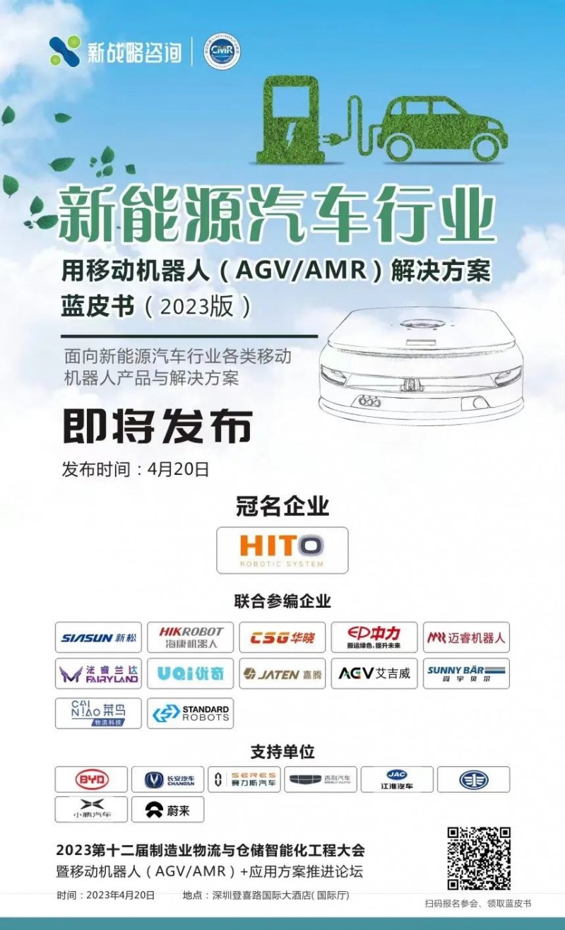 4月20日,在“2023第十二屆制造業物流與倉儲智能化工程大會”上,《新能源汽車行業用移動機器人(AGV/AMR)解決方案藍皮書(2023版)》將正式發布!