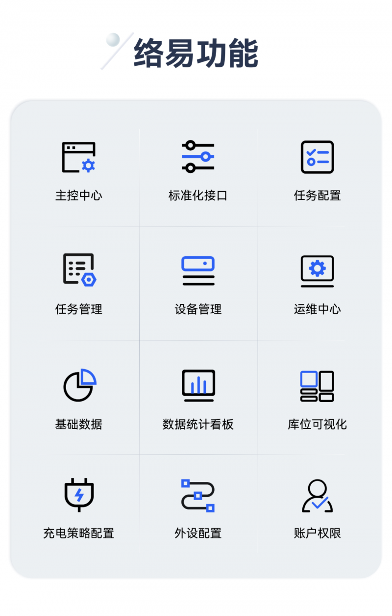 “小身板”體現在系統的輕量級,絡易支持10臺以內多品牌AGV/AMR設備的選型和快速對接,輕量級的特點能大幅提升系統的快速部署能力,有效節約項目的實施運維成本。
