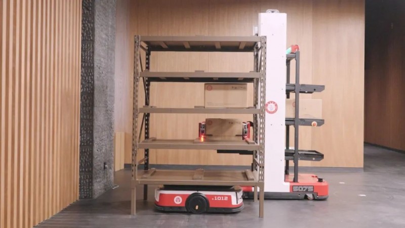 工作臺使用潛伏機器人,進行跨樓層搬運,在茶窖內料箱機器人完成茶餅存儲,實現(xiàn)多車型混行作業(yè),以及不同導航方式間的平滑切換,大大提升了茶窖的倉儲柔性。