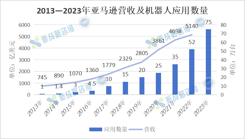 從2012年Kiva機器人“入職”亞馬遜開始,十年間,亞馬遜內部應用的機器人數量不斷攀升,尤其是近三年來,亞馬遜內部應用的機器人數量平均日增數百臺。