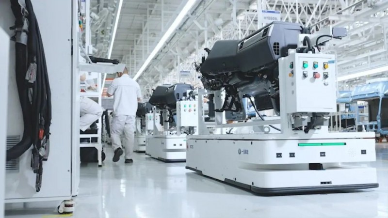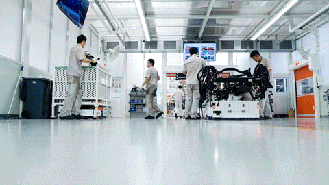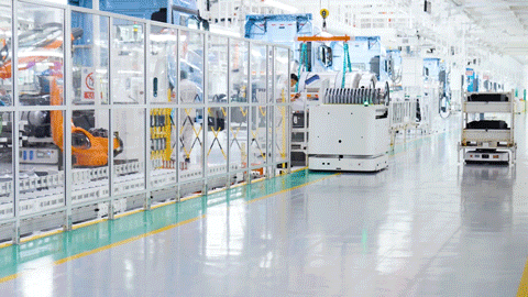 “縱觀整個(gè)工廠,底盤(pán)裝配、整車裝配等線體全部采用工位可變、布局可調(diào)的線體AMR,顯著提升生產(chǎn)線的柔性化水平,靈活性更高,降低異常停線時(shí)間,物流作業(yè)效率提升55%。