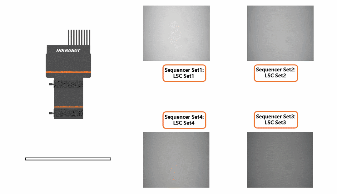 相機固件內置LSC陰影校正輪詢功能,可有效應用于面板和PCB等檢測應用中,在不同顏色打光輪次下進行獨立校正,保證每個光源下的打光均勻性。