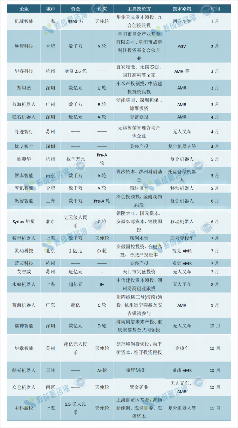 2023年AGV/AMR行業(yè)融資情況一覽:共24起,累計金額超18億