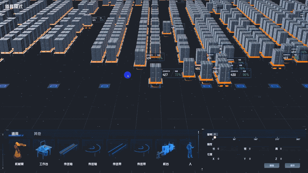 在某電子廠的自動化生產(chǎn)車間,海康機器人數(shù)字孿生技術(shù)改善了傳統(tǒng)系統(tǒng)的局限性,實現(xiàn)全面展示工廠存儲庫位的實時運行狀態(tài),并與監(jiān)控視頻系統(tǒng)聯(lián)動,提供實時監(jiān)管功能,用戶可以及時了解倉庫的運作情況,及時調(diào)整和優(yōu)化倉庫管理策略。