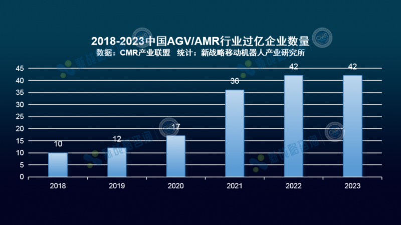 圖表:2018-2023中國AGV/AMR行業過億企業數量