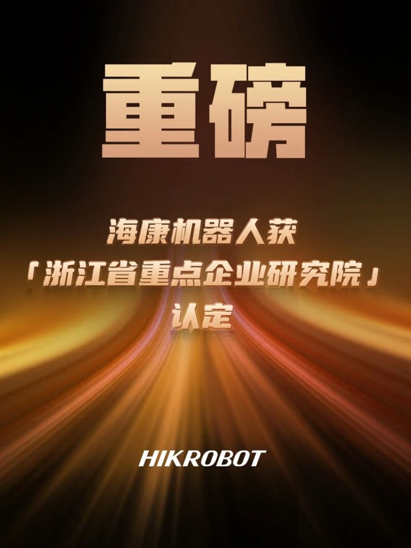 勛章墻+1!海康機器人獲“浙江省重點企業研究院”認定