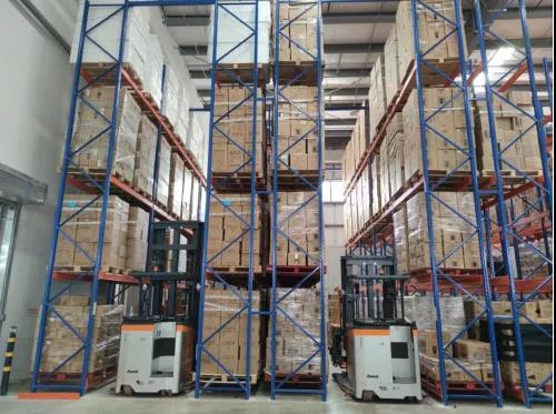 優(yōu)異的性能使得VDA116三向叉車自推出以來就受到了眾多用戶的青睞。某食品配送公司,每天有大量的物料需要進出倉庫,之前都是采用地堆的方式存儲。隨著公司業(yè)務的不斷擴大,原本的存儲方式已經(jīng)不能滿足他們現(xiàn)有的業(yè)務需求。只有將物料上貨架,在不改變現(xiàn)有倉儲面積的情況下,可以增加庫位。可是如果采用傳統(tǒng)貨架堆垛方式,在庫位的增加上并沒有很大的優(yōu)勢,未來業(yè)務再擴張后,還將面臨儲位不足的問題。客戶多方比較后決定采用卓一的三向堆垛車來改造現(xiàn)在的倉庫。