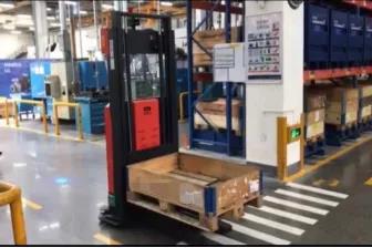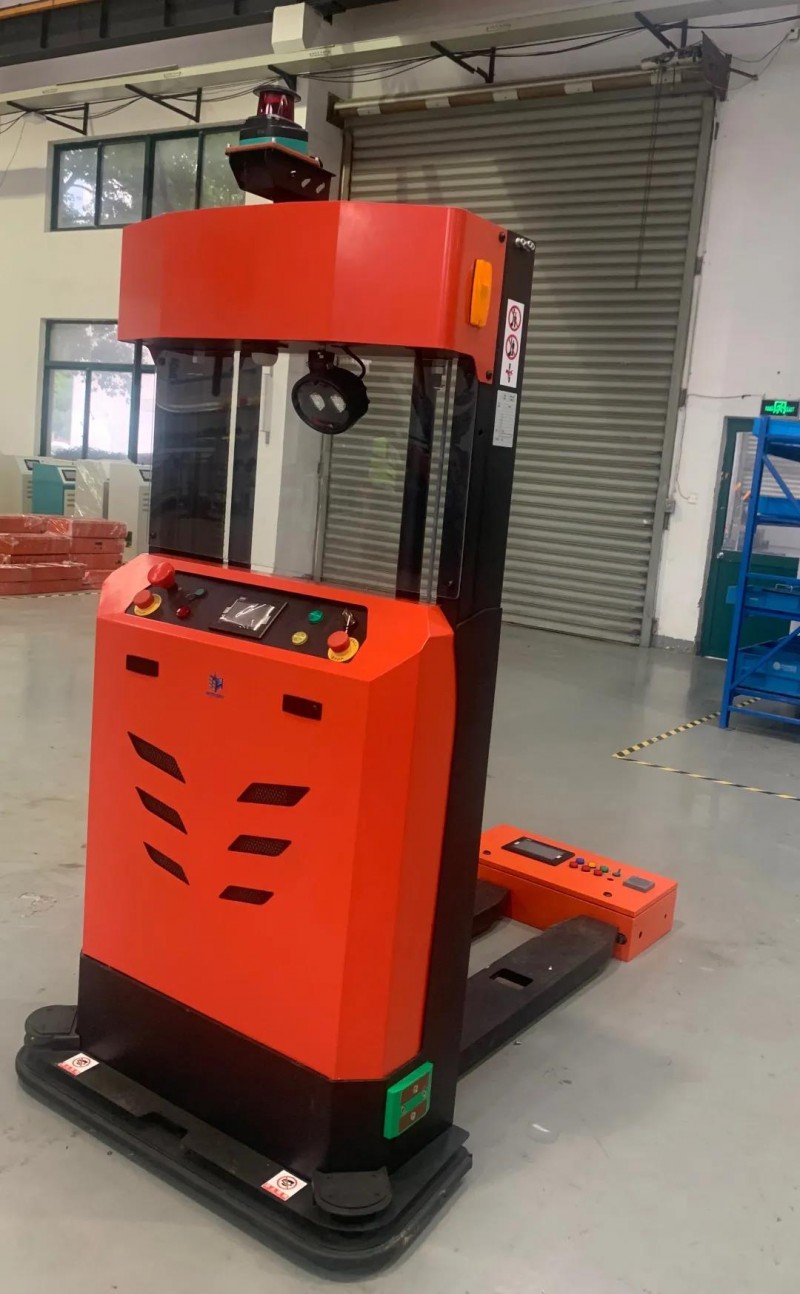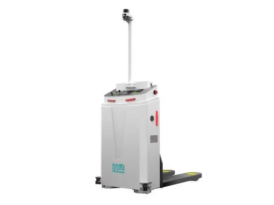 窄通道三向AGV外,在一些不需要高位存儲的場景,AGV廠商們與傳統(tǒng)的叉車廠商合作,通過對車體小型化、輕量化的設計,減小車體的轉(zhuǎn)彎半徑,推出了窄通道前移堆垛AGV,這類產(chǎn)品的舉升高度一般在1.6m左右,工作通道在2m左右。主要面向線邊運輸、低位上料、倉儲管理等場景應用。