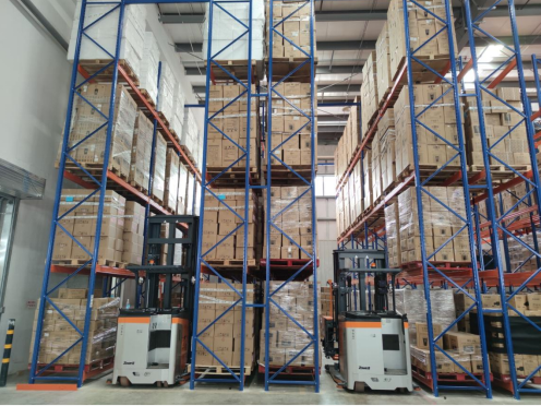 優異的性能使得VDA116三向叉車自推出以來就受到了眾多用戶的青睞。某食品配送公司,每天有大量的物料需要進出倉庫,之前都是采用地堆的方式存儲。隨著公司業務的不斷擴大,原本的存儲方式已經不能滿足他們現有的業務需求。只有將物料上貨架,在不改變現有倉儲面積的情況下,可以增加庫位。可是如果采用傳統貨架堆垛方式,在庫位的增加上并沒有很大的優勢,未來業務再擴張后,還將面臨儲位不足的問題。客戶多方比較后決定采用卓一的三向堆垛車來改造現在的倉庫。
