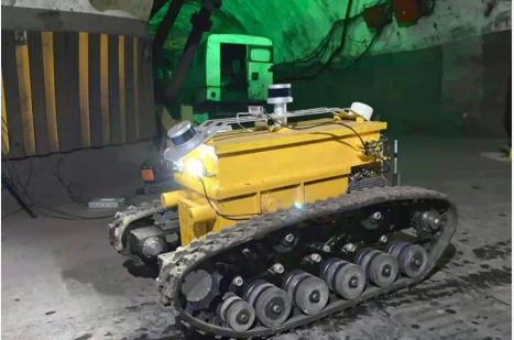 礦區(qū)目前主要應(yīng)用的巡檢機(jī)器人可分兩類,一是軌道式巡檢機(jī)器人,二是履帶式移動(dòng)巡檢機(jī)器人。由于礦區(qū)地形復(fù)雜,履帶底盤在通過(guò)性能上有更好的表現(xiàn),適合復(fù)雜不平整的地面環(huán)境。巡檢機(jī)器人攜帶環(huán)境探測(cè)模塊,可探測(cè)氣體、溫度、濕度、壓差等環(huán)境參數(shù)信息,同時(shí)還具備紅外圖像采集功能,圖像系統(tǒng)云臺(tái)可實(shí)現(xiàn)水平、垂直連續(xù)旋轉(zhuǎn),實(shí)現(xiàn)對(duì)井下危險(xiǎn)區(qū)域環(huán)境全方位探測(cè)。