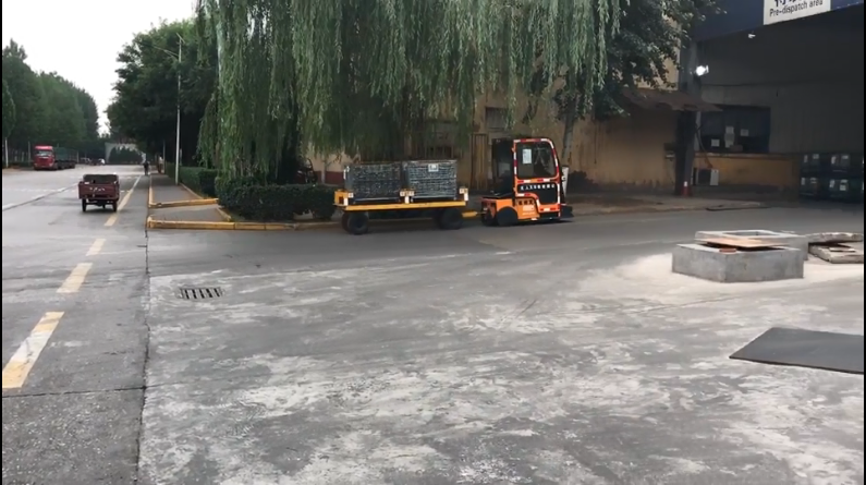 在國內機械加工行業頭部企業,實現全球首例室內外全天候長距離對接無人轉運。在該園區場景中,室外的極端環境(例如暴雨、積雪等)對無人工業車輛的定位導航提出了新的挑戰。通過導入未來機器人的無人叉車系統,室內引入VNP10-02系列平衡重式無人叉車、VNP10系列平衡重堆高式無人叉車可穩定實現自適應取放貨裝車,室外引入VNQ40無人牽引車可實現室內外或外搬運。未來機器人采用混合導航、人工智能搬運方式,解決室內外長距離運輸的難題,提高產線之間的上下料工作效率。無人叉車與無人牽引車交互接駁場景的落地,實現機械零配件原料和成品在兩個倉庫和三個車間之間的全流程無人化轉運。