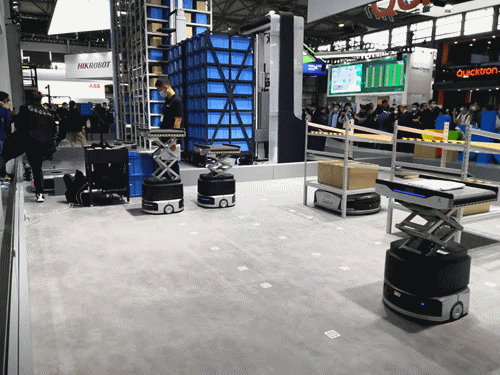 適用于小件倉的Flex系列和中件倉的Max系列視覺導航AMR,展示了自主繞障、低矮避障、托盤揀選對接工字架等功能。