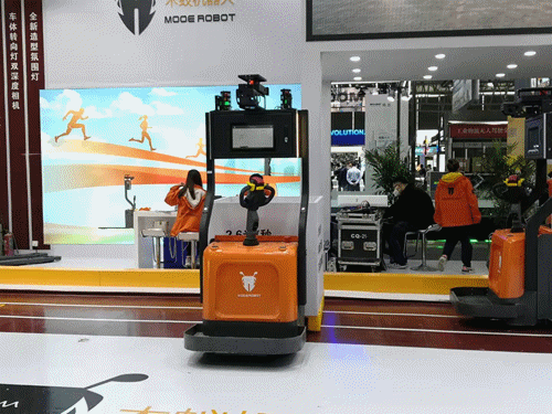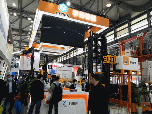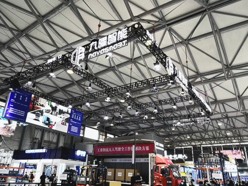 系列無人叉車產品,包括堆高式、平衡重式無人叉車等,并現場演示了月臺貨車裝卸方案。