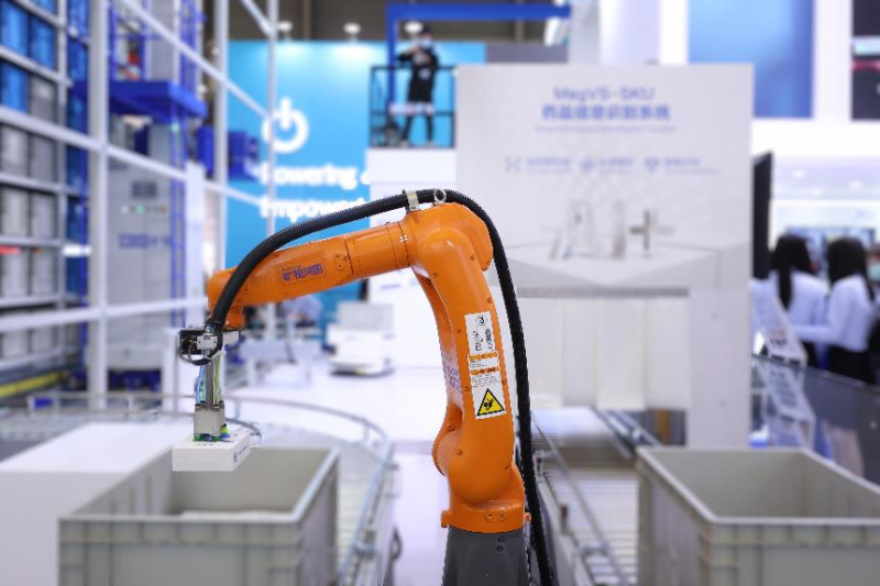 在CeMAT現場,曠視模擬醫藥流通行業的典型業務場景部署了這套系統,為參展觀眾演示從藥品下單——藥品輸送——機器人揀選——藥品信息識別——藥品接駁——藥品入庫整個業務流程。曠視3A智慧物流解決方案已在多個行業有了實際的應用,助力物流向數智化、柔性化、低碳化升級。