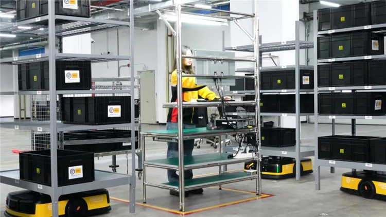通過機器人自動將存儲物料搬運至指定工作站,整體找貨能力提高30%有余,大幅縮短人找貨時間。