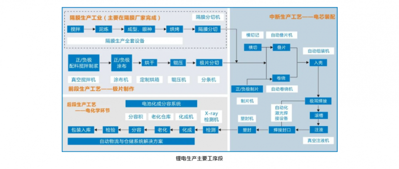 鋰電的生產工序分為前中后三段。